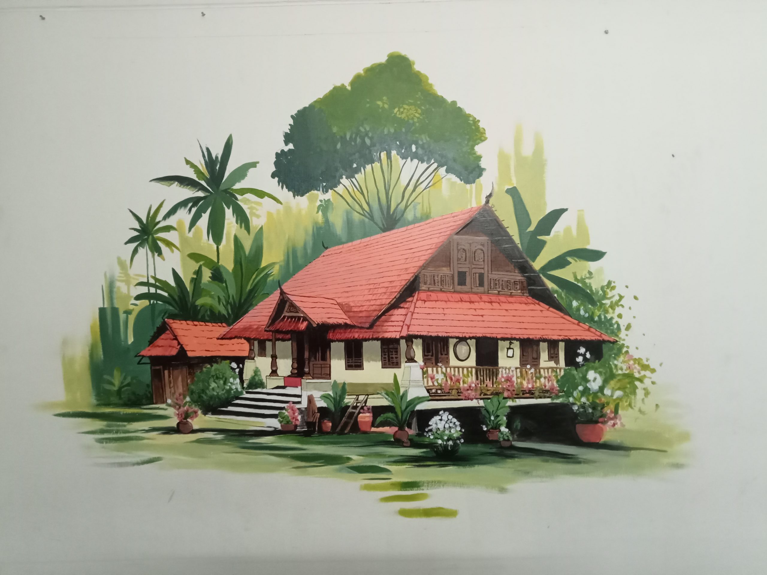 Loving the idea of murals were not that strongly built in my heart for a very long time because I grew up in a country where walls that had public access were meant for ugly ads, large movie posters, political campaigning, and sometimes being a urinal. And Indoor murals were only meant for religious ‘purposes’. So, naturally, I always thought walls were never meant for art. I used to stick posters and magazine cutouts in my room, though, which was still frowned upon. So I can’t really say the idea was completely absent in my mind. But painting art on walls were consistently a big no-no, until I started living in a tiny house in Bangalore with a couple of friends. The house was old, and the owner didn’t really care about how the walls looked. With their permission, I started working on my very first mural using colour pencils. It was small, and born out of curiosity and rebellion, and it was one of my absolutely favourite works, even to this day. The owner even kept that mural after they repainted the house. Years passed, and I had forgotten the high of creating art on walls, until I arrived in Australia for the first time to visit my sister. She took me to lanes filled with mural and places brimming with artistic energy. Needless to say, I was hooked. The love for murals grew exponentially when I took up my first volunteering gig at a graffiti festival in a small town in Queensland called Toowoomba. Meeting so many talented mural artists and seeing them create magic on public walls made me rethink the very idea of the relationship between public spaces and art, and how that connection extends towards the people around it. It was a time of massive growth for the global mural industry, and the effects were felt intensely in my heart. The process of finding the right kind of walls (ideally, the kind that at least would not invite trouble for me) to paint on still challenges me.