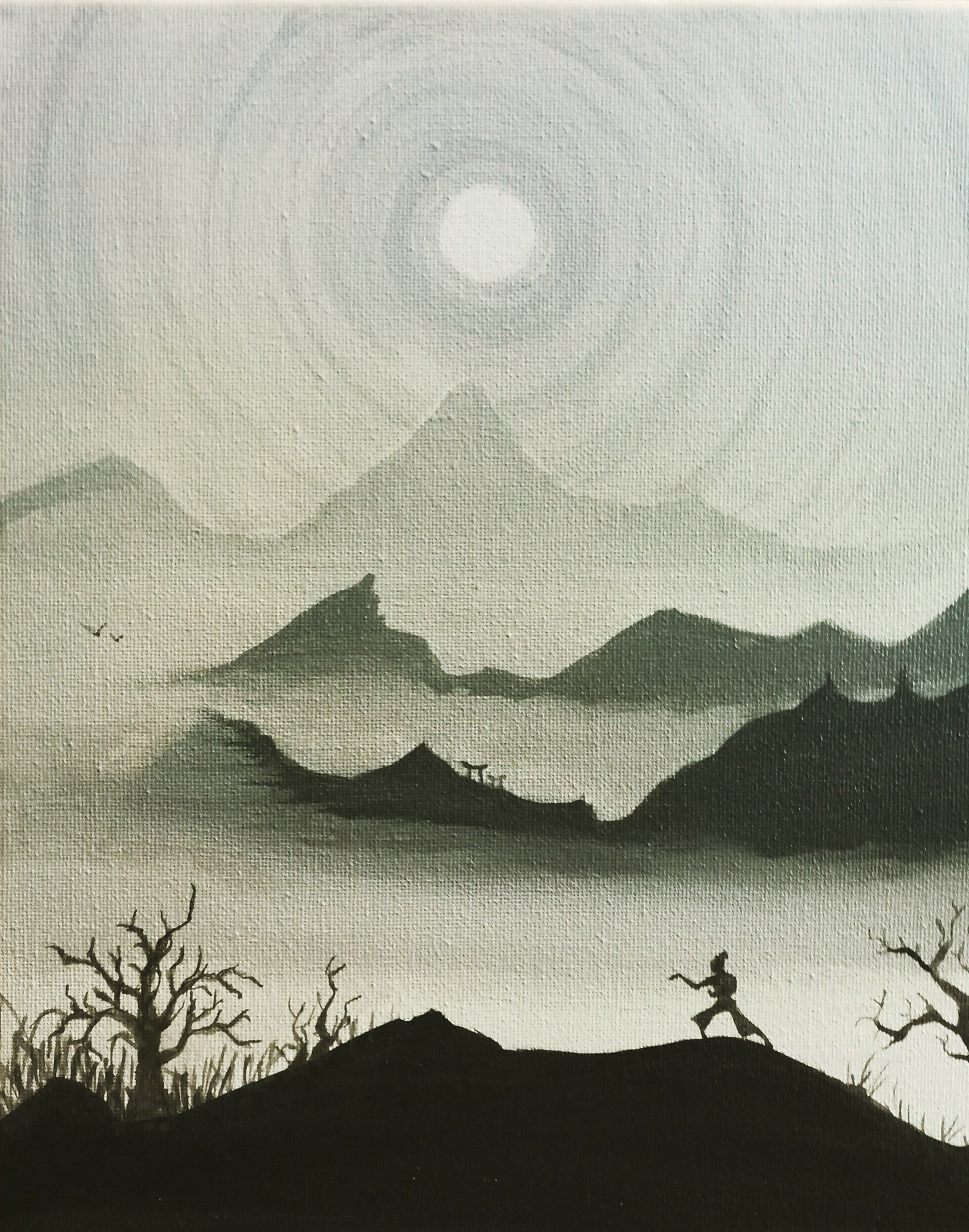 The first time I used paints was watercolours to compete at a children’s painting competition. Though I love watercolour art, it never stuck with me. Years later, I found out from my mum that I can use acrylic paint to paint on clothes. That led me to use acrylic paints on my school bag, which gained me some attention in the schoolyard. I did not use paints for many years after that, until maybe just a decade ago. That really stuck. I was afraid I might lose interest in sketching, and that fear became true when I fell in love with the process. A few years later, when I was knocking on gallery doors to have my art exhibited, one of the gallerists pointed out that I was better off doing sketches. That made me go back to my roots, while also staying curious and learning new tricks with painting.